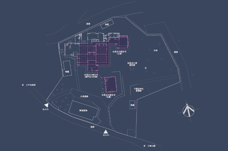 Hassecho Mito in Miura city, where the former Hasegawa family residence was located, is a village that was continuously operated during the Yayoi period. The remains and relics are outstanding with many pit-type dwellings and pottery in Miura city. The Akasaka archeological site from which archeological items and equipment have been excavated is registered as a nationally designated cultural heritage site.