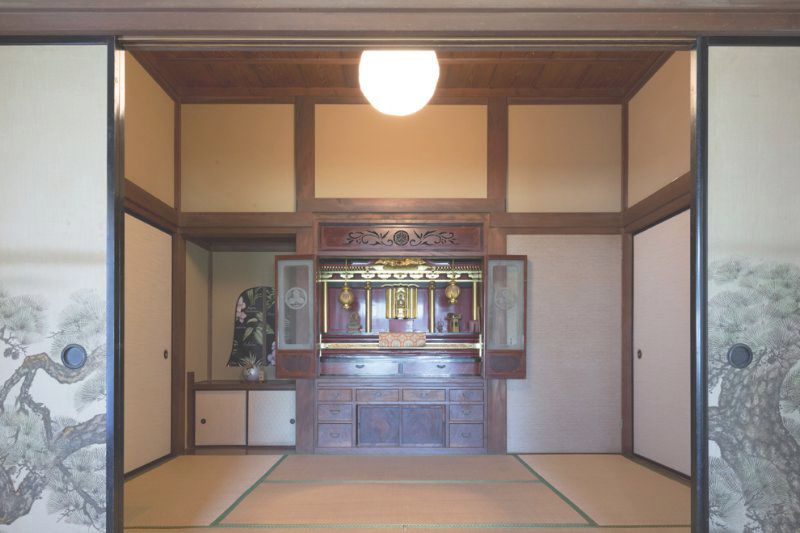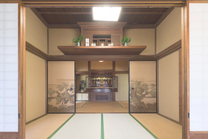 In the design, the lumber and the goodness of the construction are remarkable, and the ceremonial stand has a wide zelkova plate, an unusual ceiling of Yaku cedar, and the entrance is a pole ceiling with a floating finish of Yaku cedar. The Buddhist altar between Buddha is made of zelkova, and a three-faced crest is put on the fence and the glass of both folding doors. The inner palace is painted in vermilion lacquer and gold leaf, and features elaborate features such as Heisanto, the lion's tree nose, and the passing of rabbits from the Unryu.