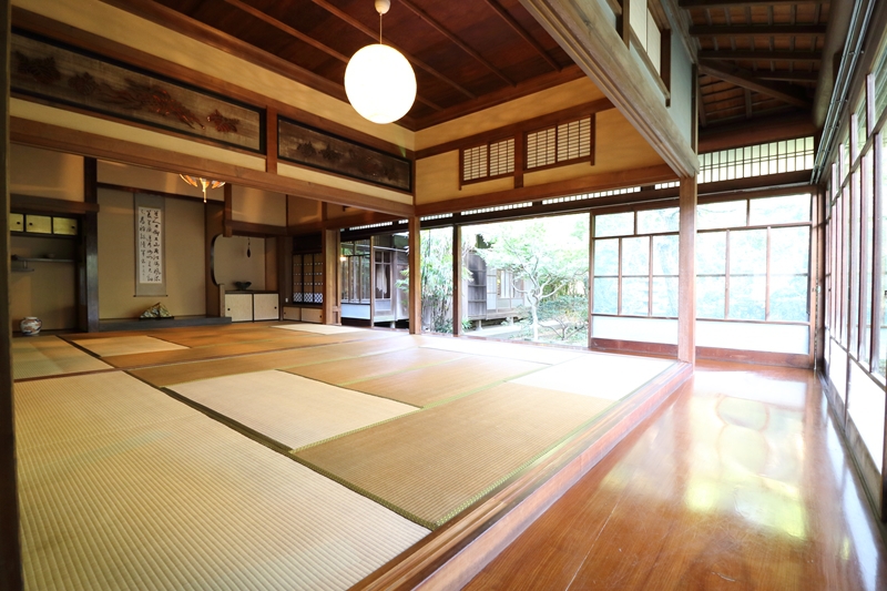 As mentioned above, the main building has a very high quality of both the traditional six-story floor plan Shoin and the remote Sukiya, and the craftsmanship of craftsmen(Miyadai) such as Sadaji Oi is excellent. We can confirm that the Hasegawa family prepared good wood for the main house from around 1926. On the other hand, the bright and stretchy space that uses plenty of glass for the outer fittings and the light spaces is a modern characteristic, and frosted glass is also fitted to the attached shoin in the main room and the elaborate kumiko of remote small shoji. On the east side of the main part, where the number of shutters is large, the doors are placed in a separate front room so that the outer periphery is not affected.